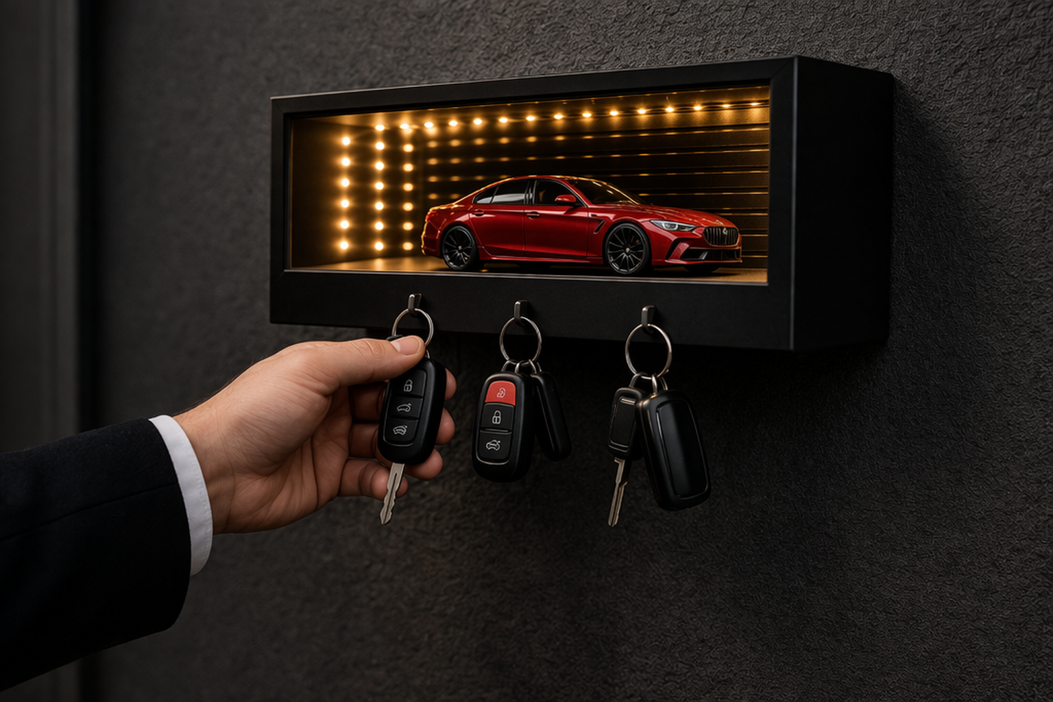 A sleek, motion-lit key display that turns your everyday keys into a clean, premium setup.